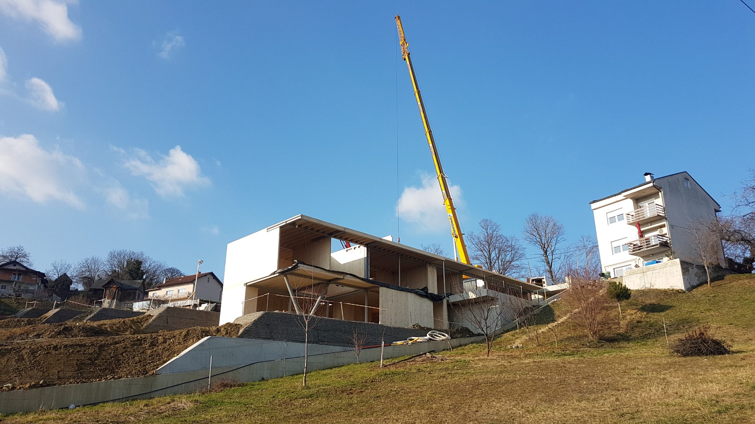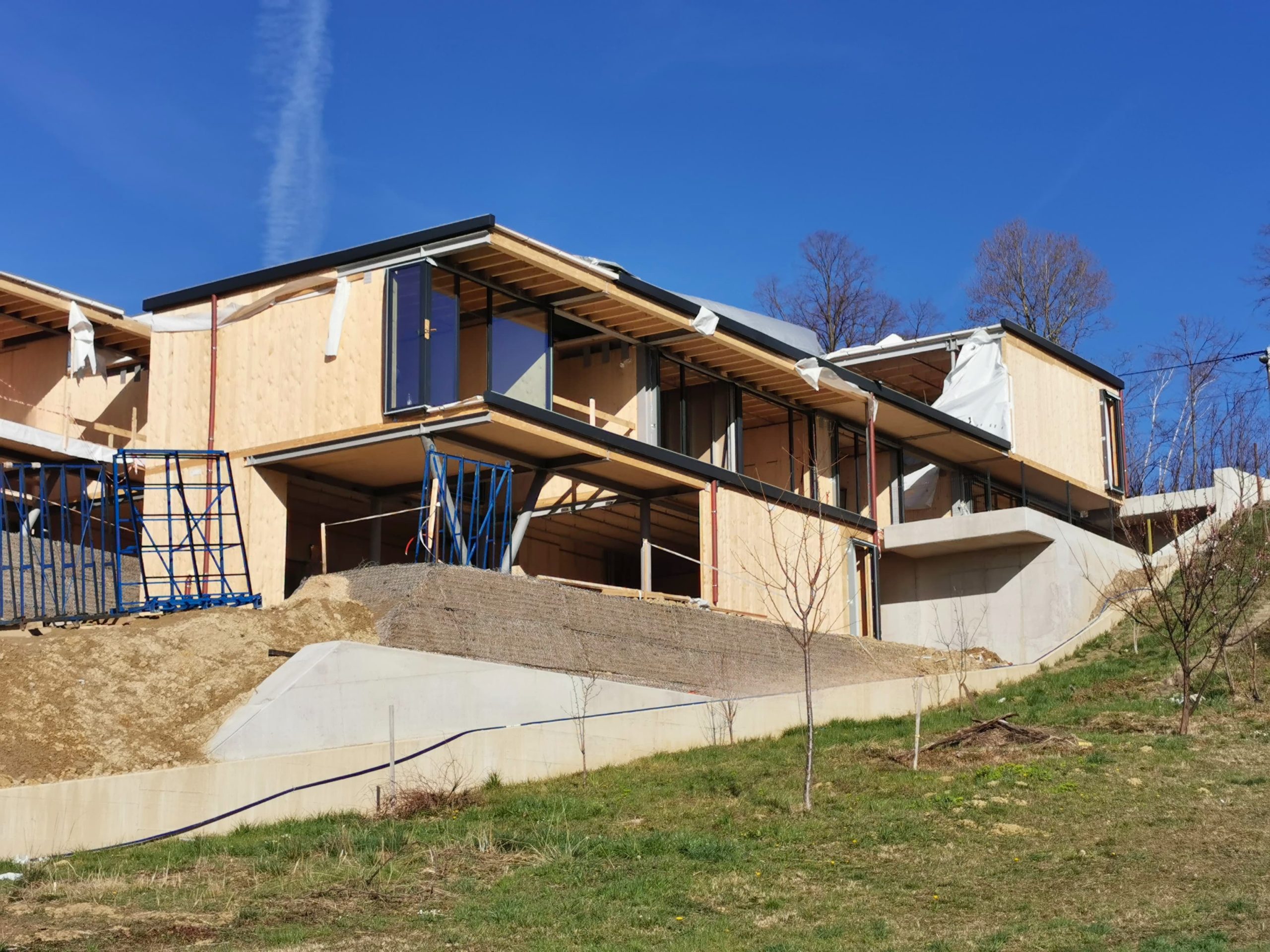CLT konstrukcija vseh objektov je bila zaključena v letu 2022. Projekt predstavlja primer sodobne hibridne večstanovanjske gradnje, ki združuje konstrukcijsko učinkovitost, arhitekturno dovršenost in racionalno uporabo materialov.