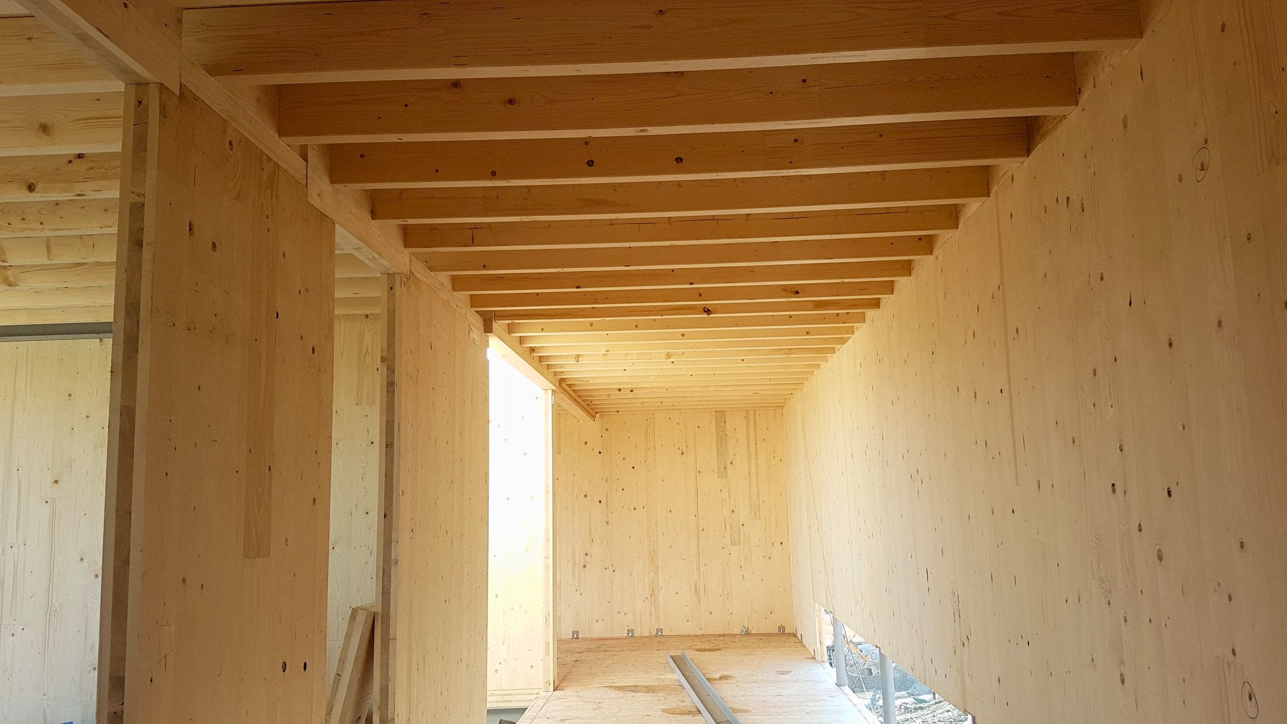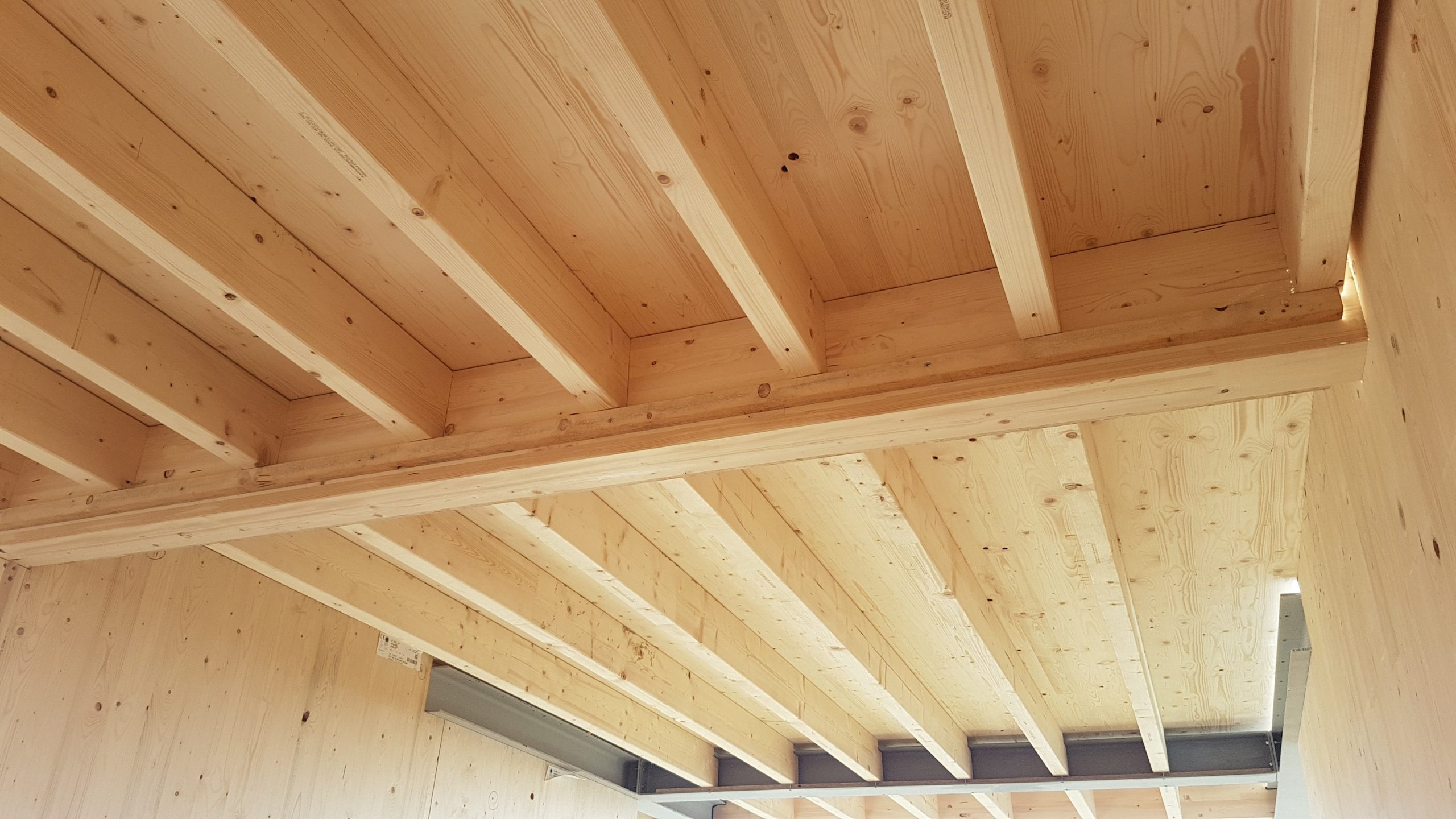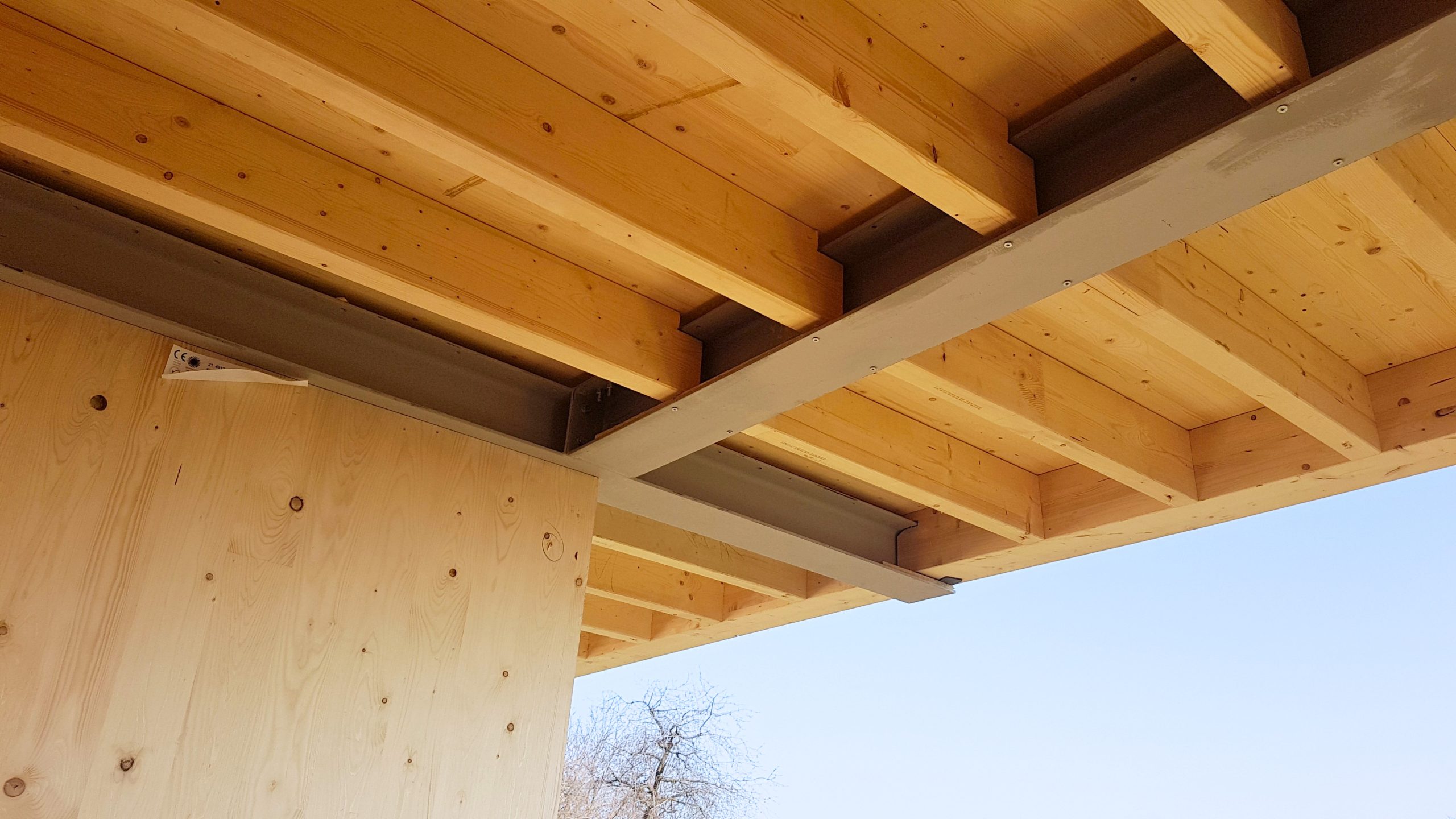 Objekti so zasnovani kot hibridna konstrukcija, ki združuje beton, jeklo in les, pri čemer CLT plošče predstavljajo ključni nosilni element. Konstrukcija je dopolnjena z lepljenim lesom (glulam/BSH) in KVH elementi, jeklo pa je uporabljeno predvsem pri prevzemu večjih razponov in konzolnih delov.
