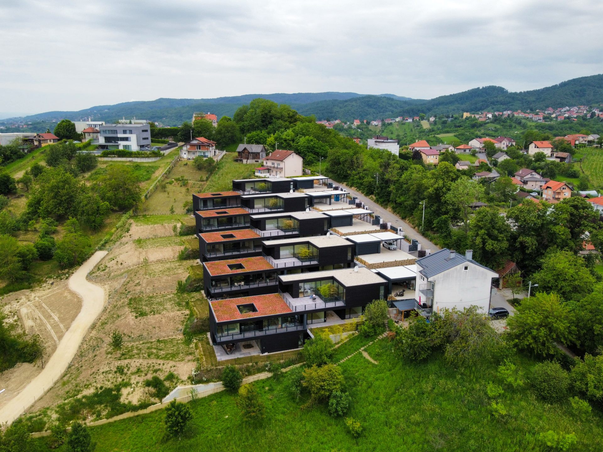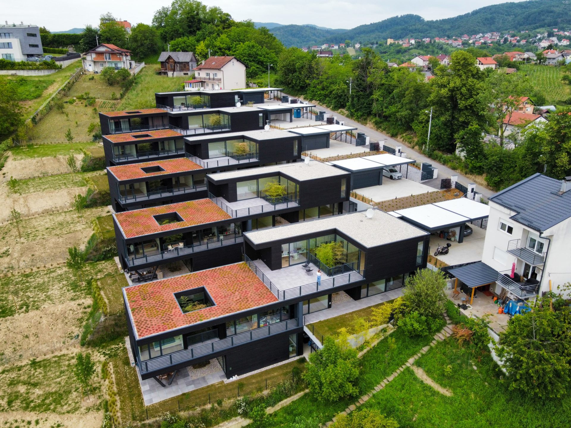 V okolici Zagreba je bil izveden projekt petih stanovanjskih hiš, zasnovanih kot dvojčki, kjer je vsaka enota namenjena bivanju dveh družin. Arhitekturno zasnovo je pripravil studio VEDA ART studio pod vodstvom Daria Šišaka, investitor projekta pa je podjetje Ecotectura d.o.o..
